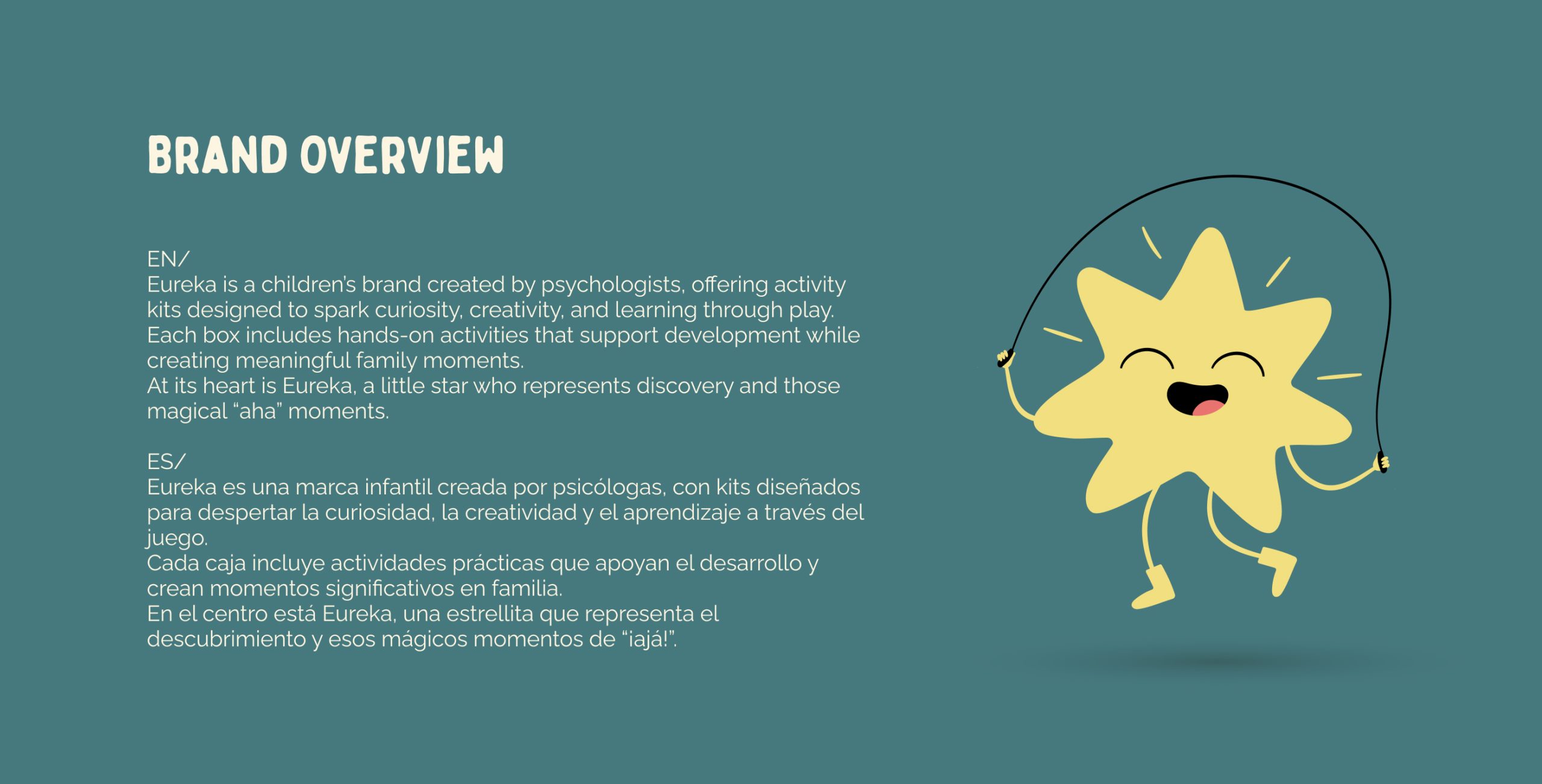 Proyecto de identidad visual desarrollado para Eureka, una marca de cajas didácticas para niños enfocada en el juego como herramienta de aprendizaje y desarrollo emocional. El sistema visual fue diseñado para conectar tanto con niños como con adultos, combinando un lenguaje lúdico con claridad educativa.